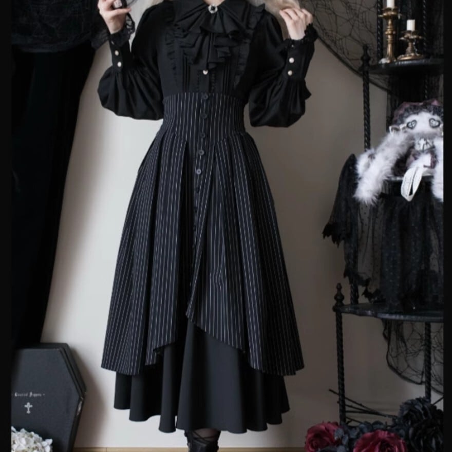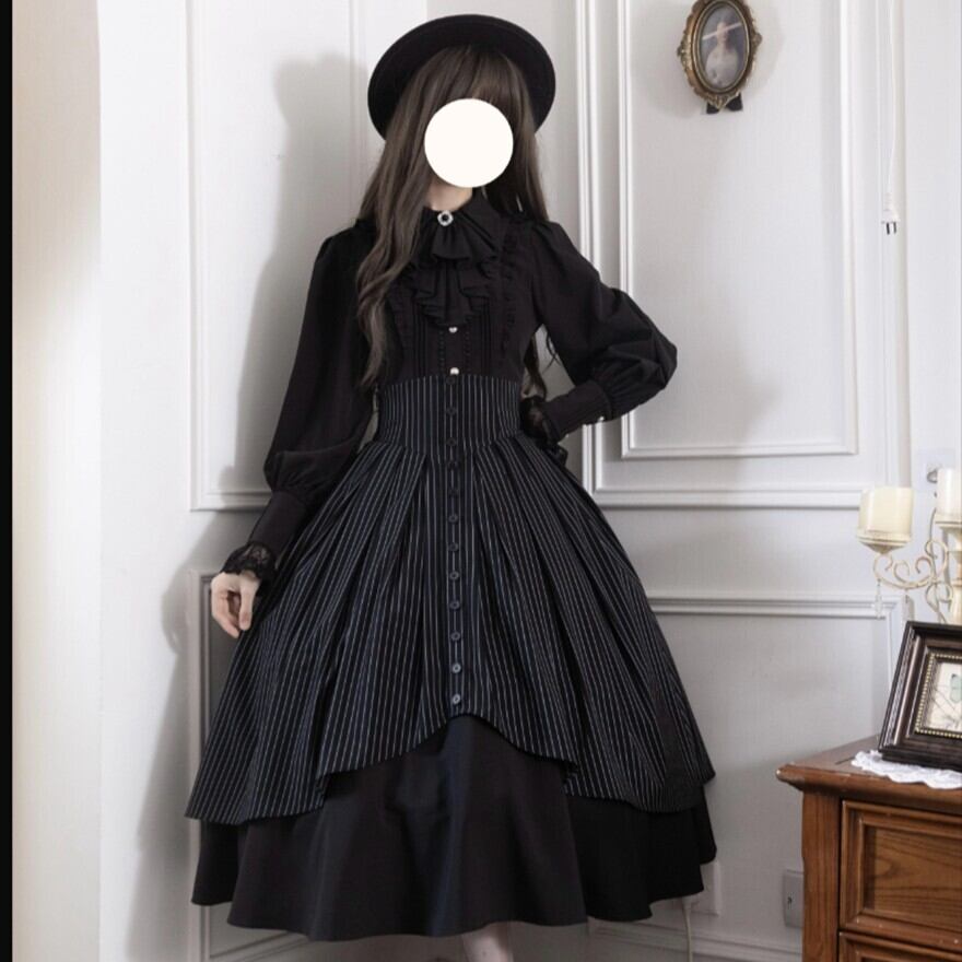 SEASONZ ゴスロリ スカート ロング丈 ストライプ柄 恋月 小夜曲 ダークゴシック 控えめ