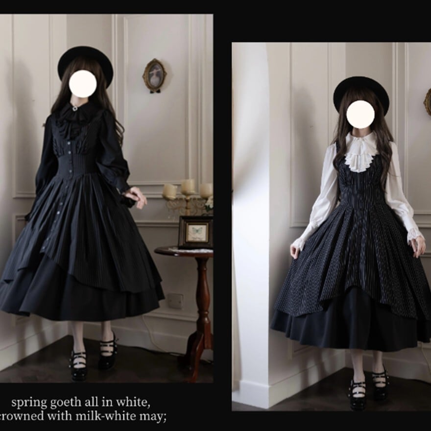 SEASONZ ゴスロリ ジャンパースカート ロング丈 ストライプ柄 恋月 小夜曲 ダークゴシック 控えめ
