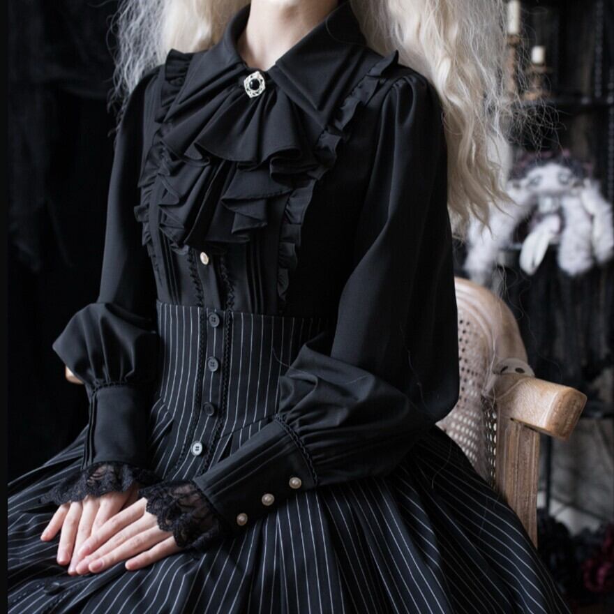 ロリータと組み合わせられる様式化された襟付きの長袖ブラウスです。