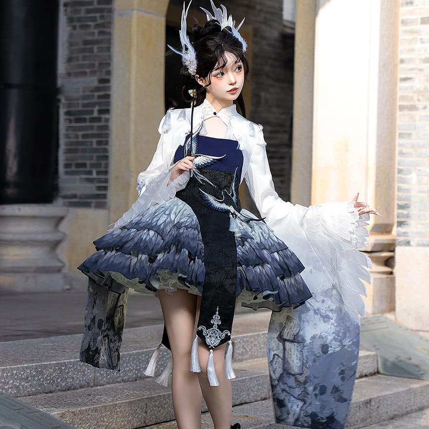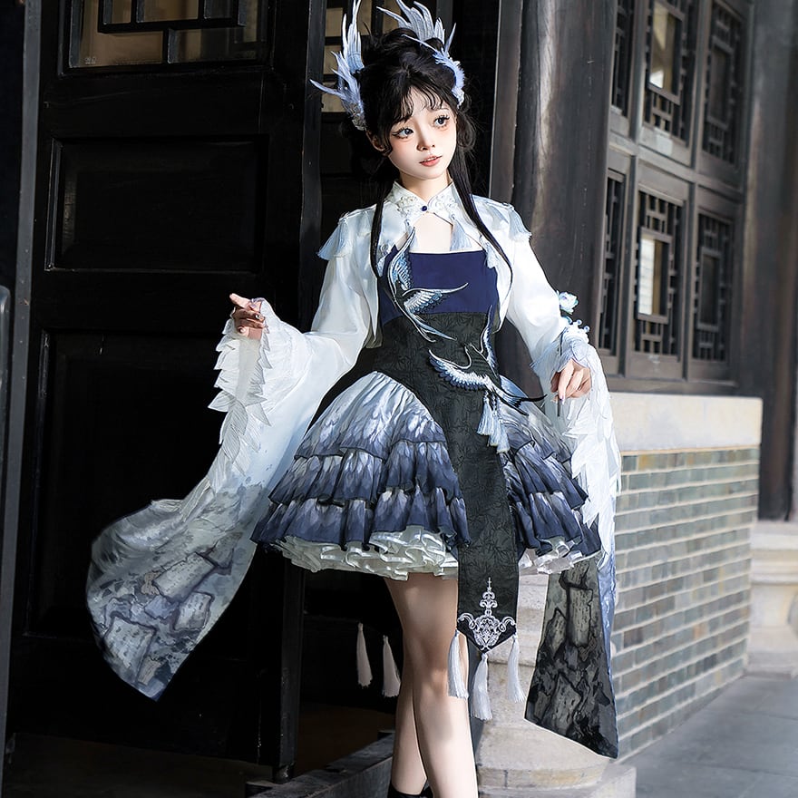 SEASONZ チャイナ風 中華ロリータ セットアップ ドレス トップス タッセル ツバメ柄 刺繍 振袖風 レース イベント衣装 撮影会 ステージ衣装