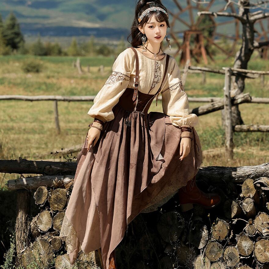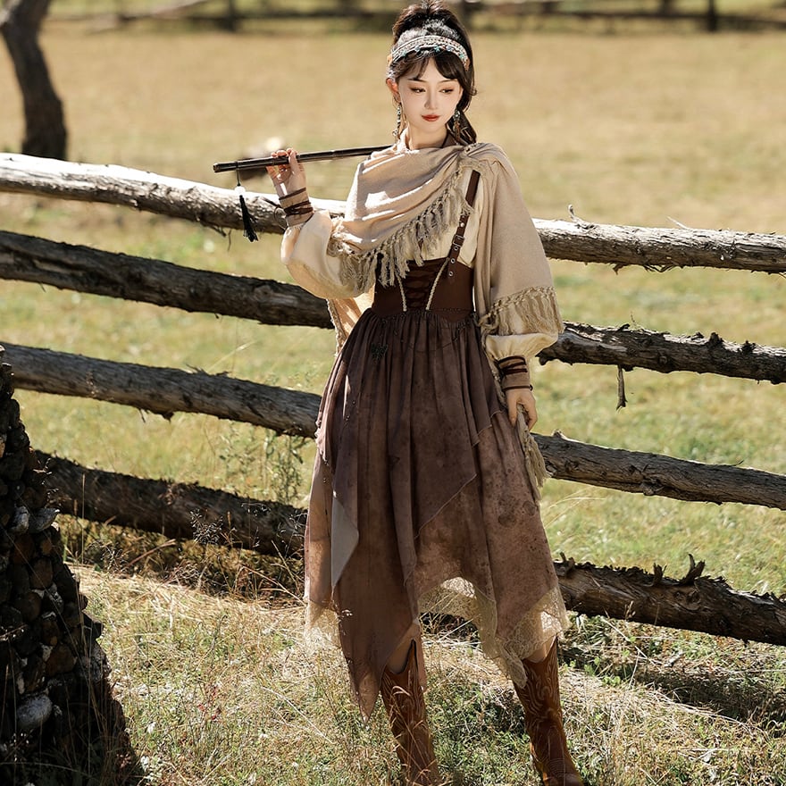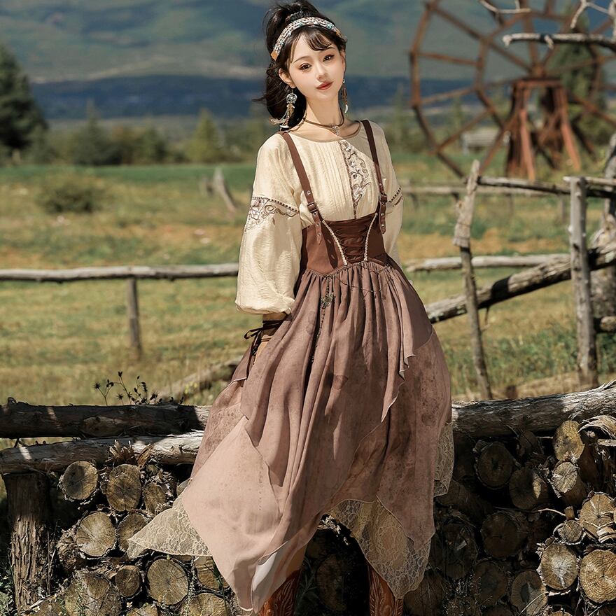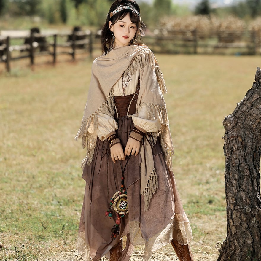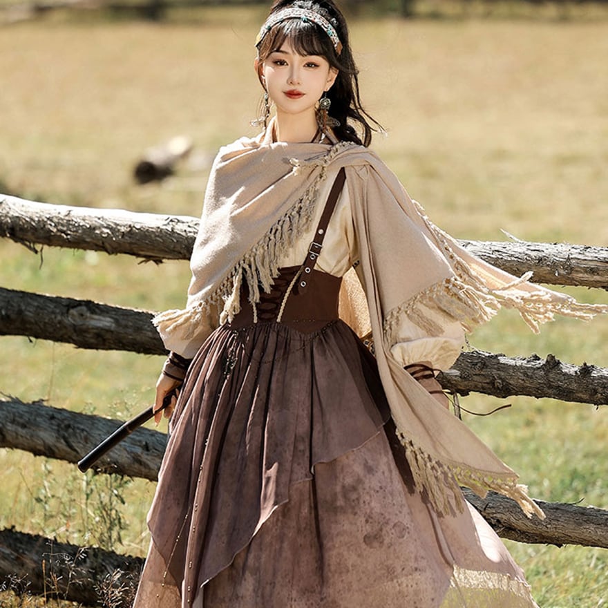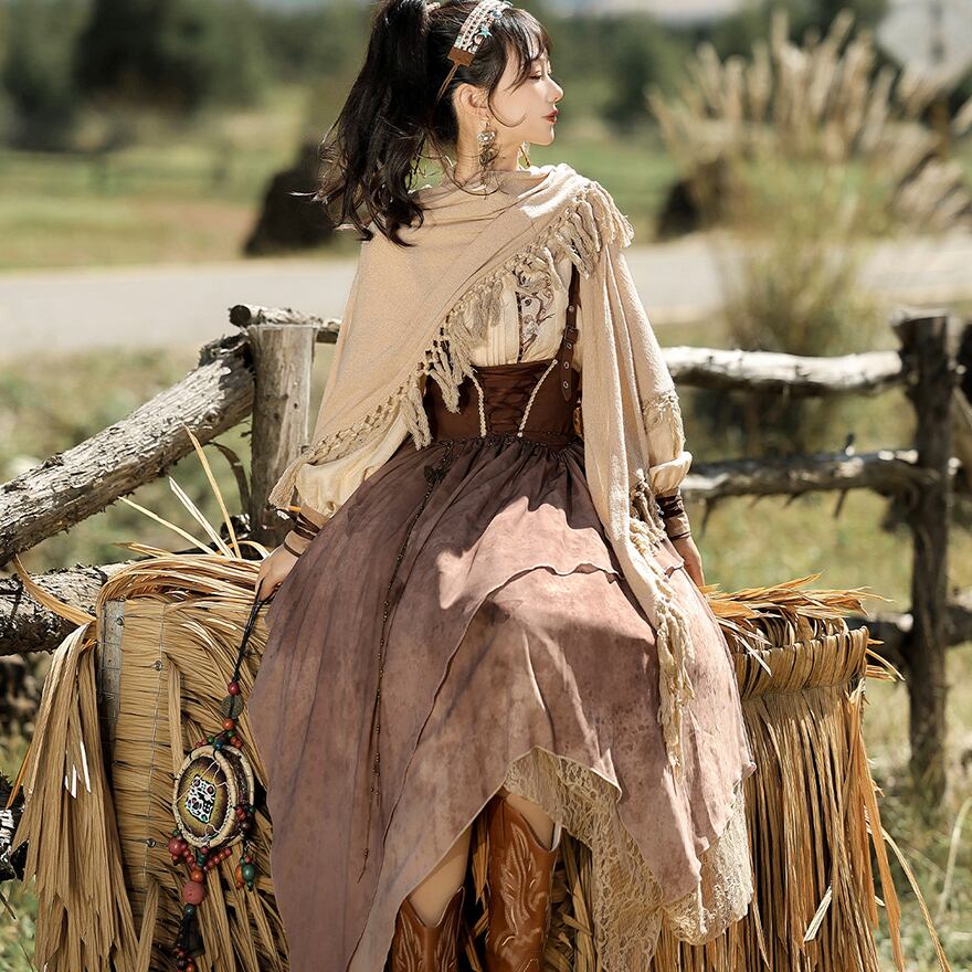 SEASONZ パンク 3点セット ブラウス ストラップスカート ショール シャツ オーバーオール スチームパンク エスニック調 舞台衣装 ステージ イベント衣装