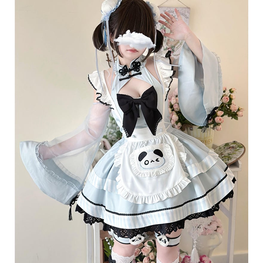 SEASONZ 中華ロリータ 2点セット ジャンパースカート フレアスリーブ 継袖 パンダ エプロン メイドカフェ コンカフェ イベント衣装