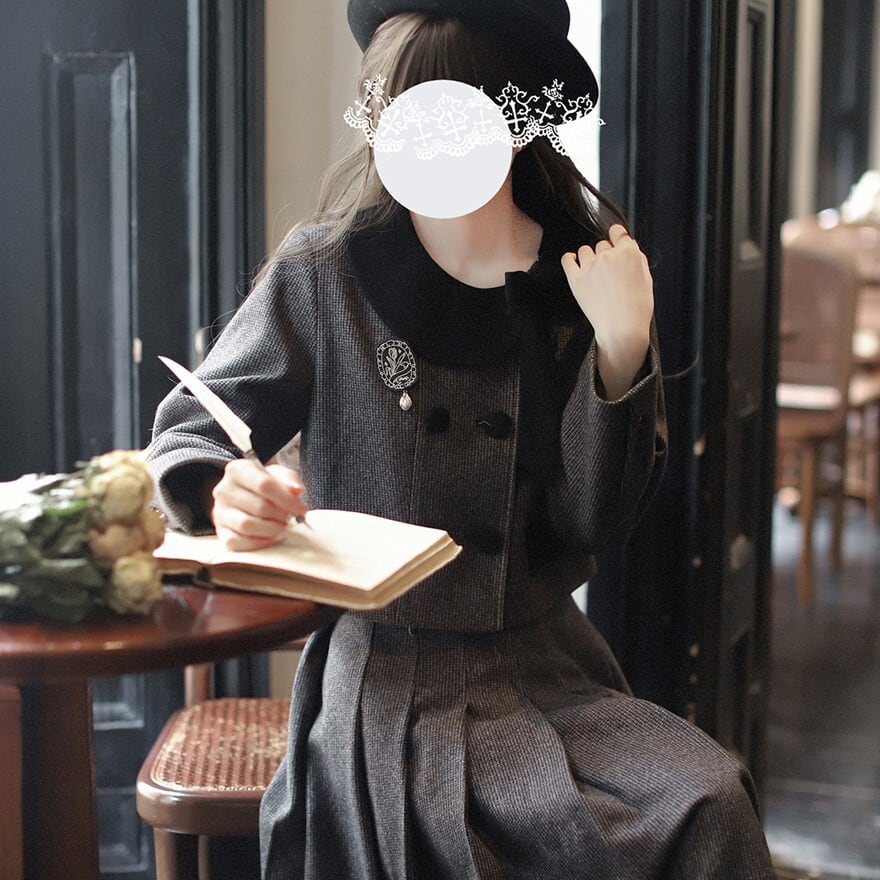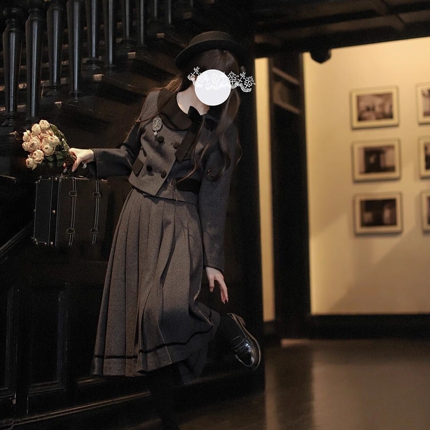 SEASONZ クラロリ ワンピース リボン 徽章4点セット ジャケット プリーツスカート リボン 徽章 上品 控えめ 普段着使い 学園風 JKロリータ
